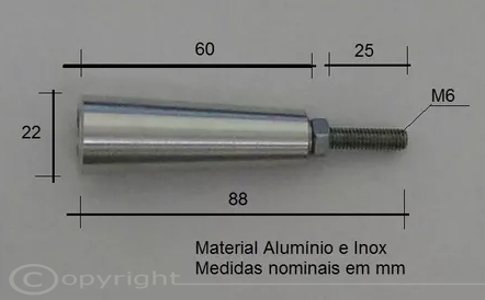 Os manípulos são em alumínio com eixo em aço inox